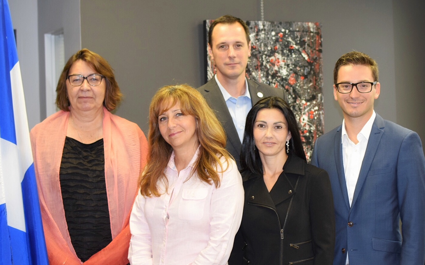 Sur la photo : Claire Samson, députée d’Iberville, Nathalie Roy, députée de Montarville, Jean-François Roberge, député de Chambly, Chantal Soucy, députée de Saint-Hyacinthe, et Simon Jolin-Barrette, député de Borduas.