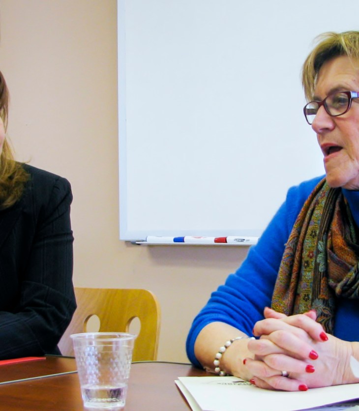 La députée de Montarville en discussion avec Mme Thiemmens, présidente du Centre d’action bénévole de…