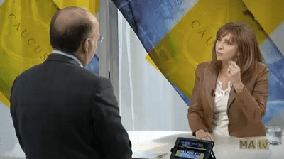 La députée Nathalie Roy en entrevue à l’émission «Caucus» avec Alain Laforest. (13 novembre 2013…